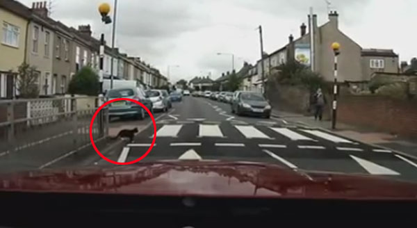 지난 9일 유튜브에는 4일 영국 켄트 주 다트퍼드의 한 도로를 지나는 저스틴 스크루턴(Justin Scrutton)의 블랙박스에 촬영된 영상에는 특이(?)한 고양이의 모습이 담겨 있습니다.