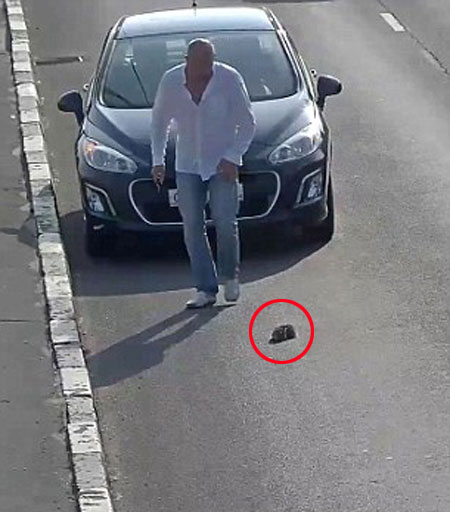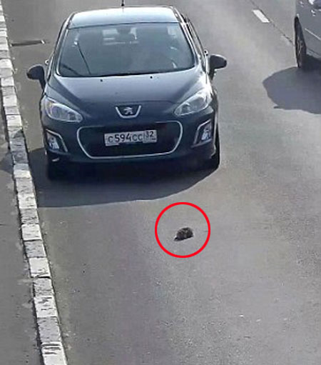 남성의 용감한 선행은 칼리닌그라드 알렉산드리아 넵스키 인근 CCTV 카메라에 고스란히 포착됐으며 이 새끼 고양이는 주행 중인 SUV 차량에서 떨어진 것으로 밝혀졌다.