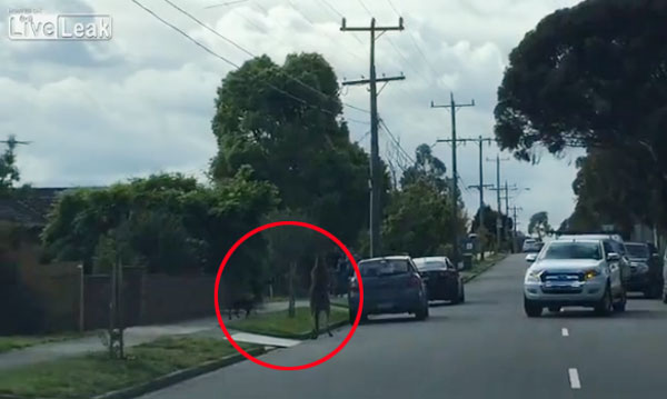 길가에서 거대한 캥거루와 조우한 견공의 영상이 화제네요.