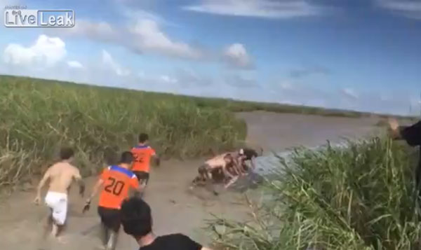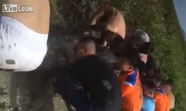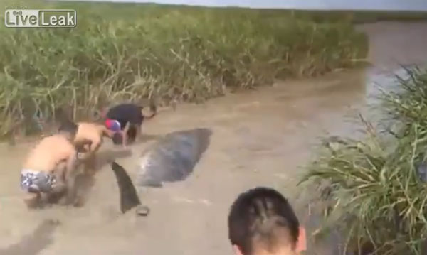 최근 영국 동영상 공유사이트 ‘라이브릭’(Liveleak.com)에 게재된 영상에는 중국의 한 강가에 모인 남성들이 모습이 보입니다. 물이 빠져나가는 사이 미처 깊은 물로 돌아가지 못한 커다란 고래 한 마리가 진흙 속에 고립됐네요.