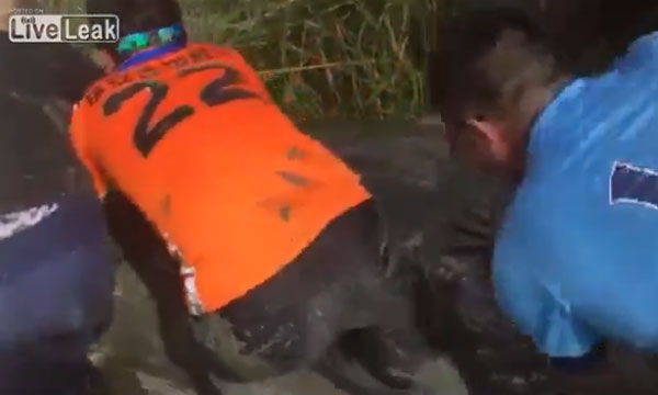 [별별영상] 강가 진흙 속 고립된 고래 구조하는 남성들