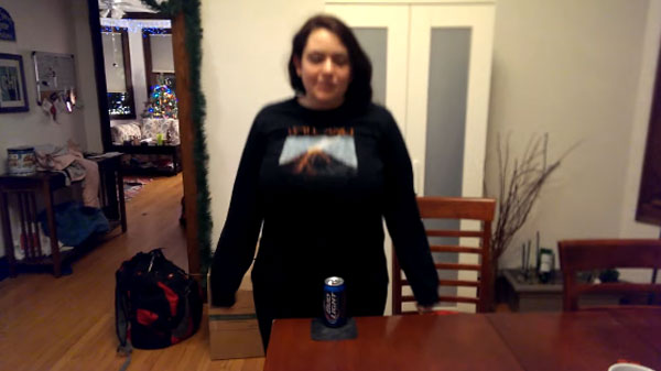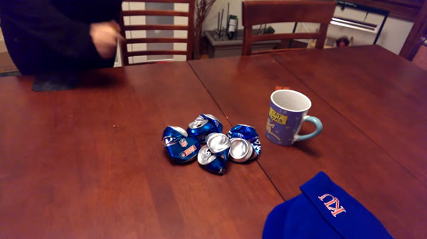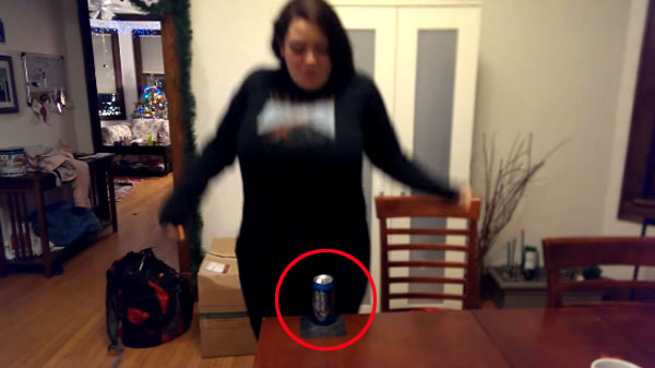 2014년도 2월에 촬영된 영상에는 헤일즈(Hales)라는 이름의 여성이 식탁 위에 버드라이트 맥주캔을 올려놓은 채 제자리에서 점프한다. 그녀는 자신의 큰 가슴으로 캔을 내리쳐 찌그러트린다. 이를 본 언니가 웃음을 짓는다. 영상의 끝부분엔 헤일즈가 찌그러트린 또 다른 세 개의 맥주캔 모습이 식탁 위에 놓여 있다.