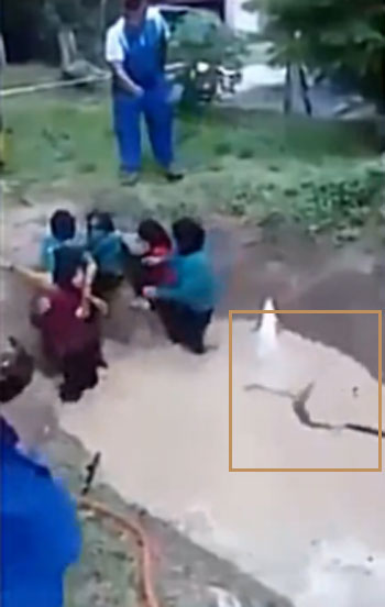잠시 뒤, 교사 중 한 명이 무언가를 물웅덩이로 던집니다. 그것은 다름 아닌 살아있는 뱀. 여학생들은 물속의 뱀이 자신들을 향해 다가오자 허겁지겁 물웅덩이 밖으로 탈출합니다. 말레이시아 여학생들의 고강도 정글훈련의 모습이 이 정도라니 믿기지가 않네요.