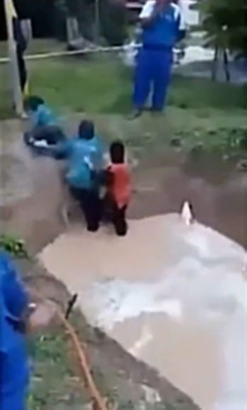 19일 영국 동영상 공유사이트 ‘라이브릭’(Liveleak.com)에 소개된 영상에는 말레이시아 페라크 쿠알라 캉사의 한 학교 정글훈련을 모습이 담겨 있습니다.