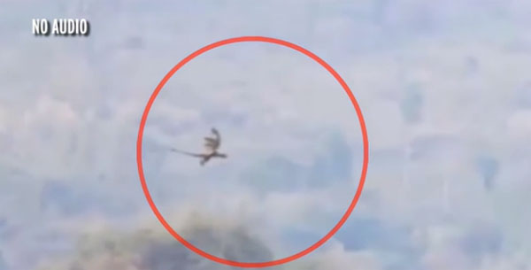 유튜브 채널 ‘ApexTV’가 소개한 영상에는 라오스의 국경지대와 접한 중국의 한 산 위를 날아가는 괴생명체의 모습이 담겨 있다. 괴생명체는 마치 익룡처럼 큰 날개와 긴 꼬리를 가지고 있다. 괴생명체는 날개를 펄럭이며 산봉우리 뒤로 비행해 사라진다.