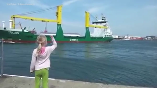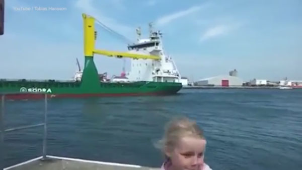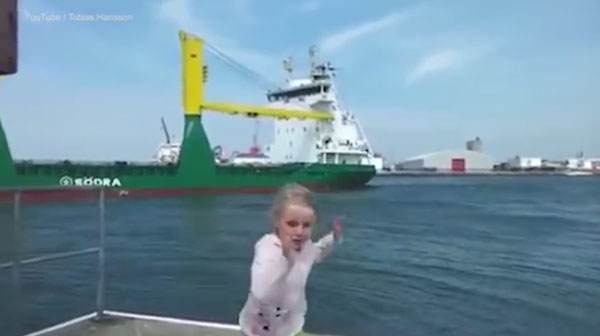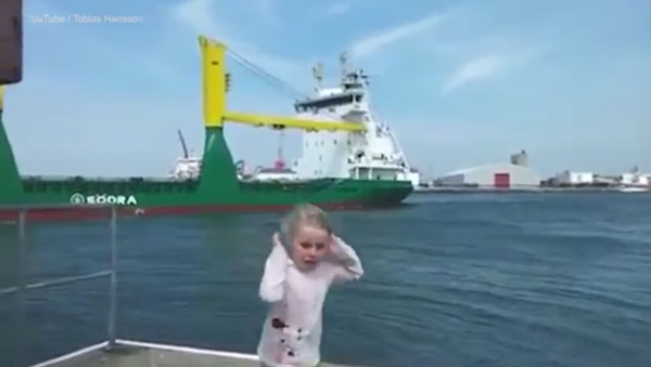 19일(현지시간) 영국 데일리메일은 최근 스웨덴에서 촬영된 대형 선박 경적에 기겁하는 금발소녀 영상을 기사와 함께 소개했다.