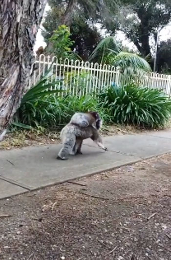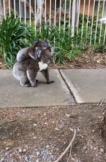 영상에는 맥라렌 플랫 메인 도로 인도에서 새끼를 등에 업은 채 아침 산책을 나서는 어미 코알라의 모습이 포착돼 있다. 어미 코알라는 라덱과 엠마에게 인사하듯 잠시 멈춰선 채 그들을 바라본 뒤 걸음을 이어간다.