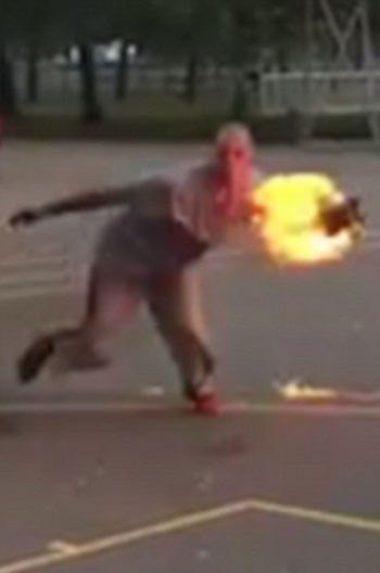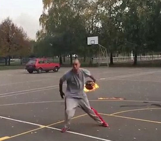 지난달 31일(현지시간) 영국 데일리메일은 최근 세르비아 키킨다의 트리키(Tricky)로 더 알려진 네마냐 블레이지(Nemanja Blazi)란 남성이 불붙은 농구공으로 드리블 묘기를 선보이는 영상을 기사와 함께 소개했다.
