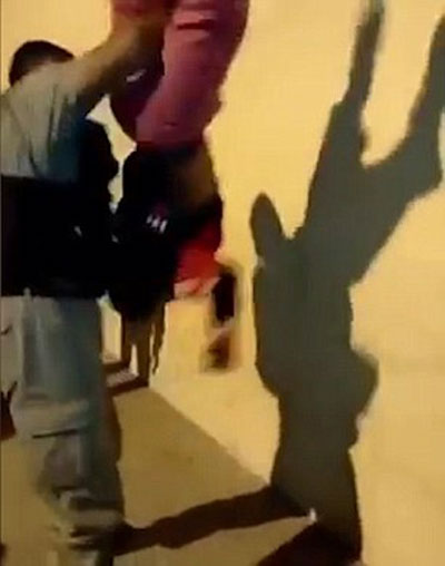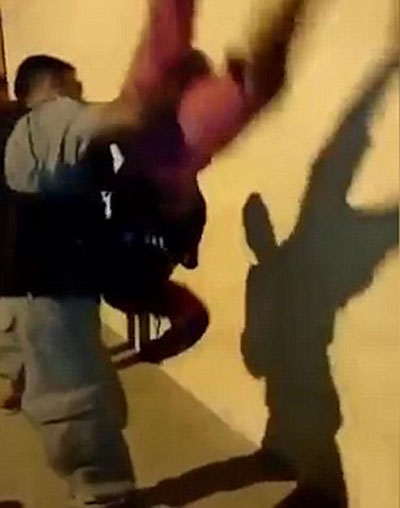 영상에는 불법 무기나 약물 혐의로 의심받는 10대 청소년 두 명을 붙잡아 검문하는 경찰의 모습이 담겨 있다. 머리 위로 양손을 올린 10대 중 한 명을 경찰은 가랑이 사이로 손을 넣어 거꾸로 들쳐메고 흔들어댄다. 이는 옷 속에 감춰놓은 불법 소지품을 털어내기 위한 것. 10대도 항의하거나 놀라지 않고 담담하게 검사에 응한다.