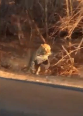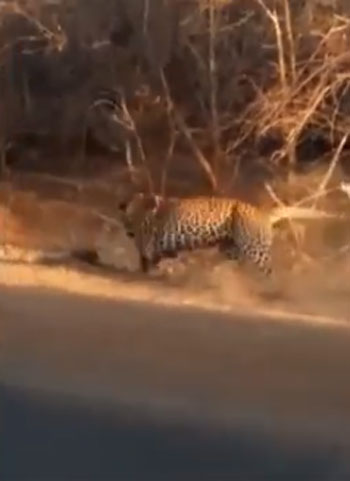 최근 남아프리카 공화국 크루거 국립공원에서 촬영된 영상에는 풀숲에서 튀어나오는 표범의 모습이 보입니다. 표범이 무언가에 흠칫 놀라면서 줄행랑칩니다.