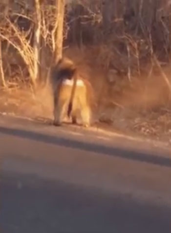 용감한 개코원숭이의 모습이 포착돼 화제네요.
