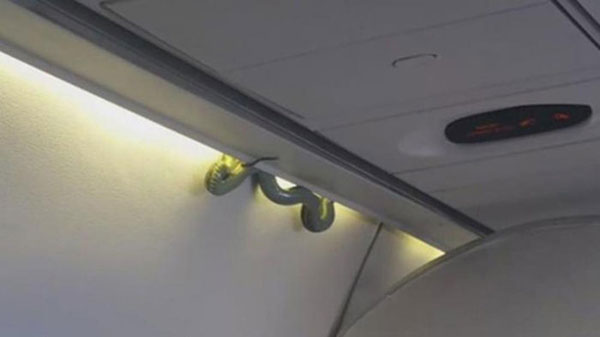 비행 중인 여객기 천장서 뱀이 출몰하는 황당한 사건이 벌어졌다.