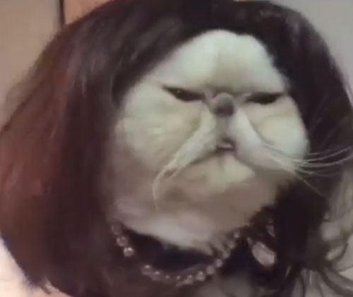 포즈 중 압권은 가발 쓴 고양이의 모습인데요, 목걸이에 수염까지 기른 고양이와 아주 잘 어울리네요. 자 감상해 볼까요?