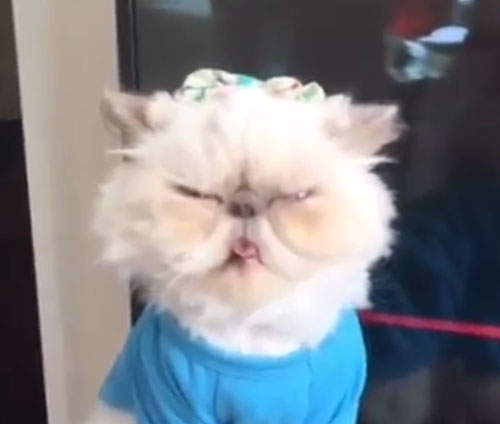 최근 미국 동영상 공유사이트 ‘브레이크닷컴’이 소개한 영상에는 옷을 입고 포즈를 취하고 페르시안 고양이의 모습이 담겨 있습니다.