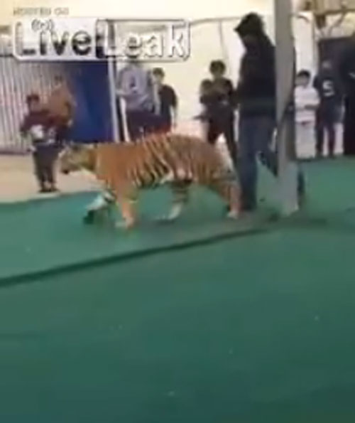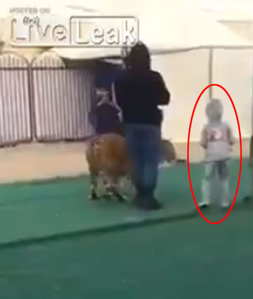 영상에는 가죽끈에 매인 호랑이와 함께 길을 걷는 한 남성의 모습이 보인다. 곧이어 주변의 어린 소녀가 호랑이를 구경하기 위해 다가서자 호랑이가 갑자기 소녀에게 달려든다. 소녀의 비명이 이어지고 영상은 종료된다.