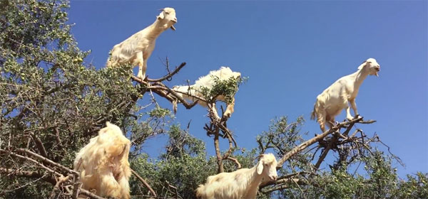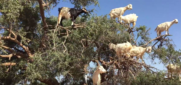 사하라 사막지대의 모로코는 땅이 척박하고 건조하여 염소들이 아르간 나무의 잎과 열매를 먹기 위해 나무 위로 올라가는 일이 자주 목격된다고 하네요.