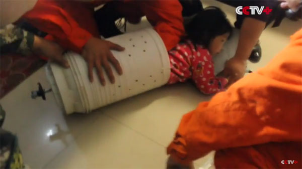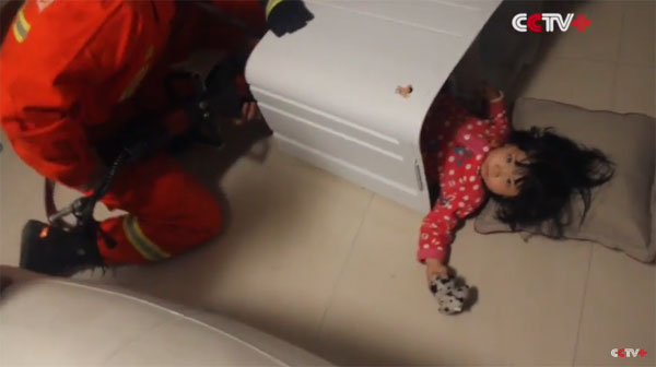 결국 구조대원들은 세탁기에서 건조통을 분리해 소녀를 구조했으며 사건 발생 20여 분 만에 부모의 품으로 돌아갔다.