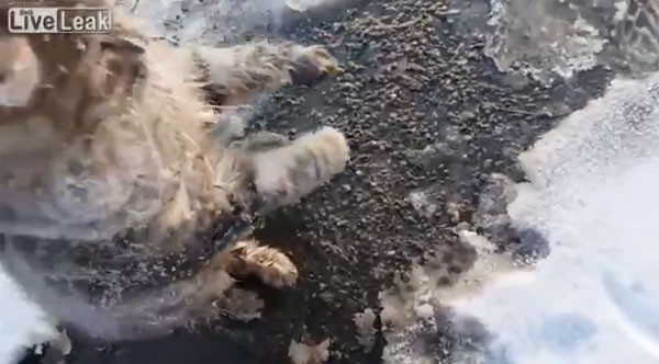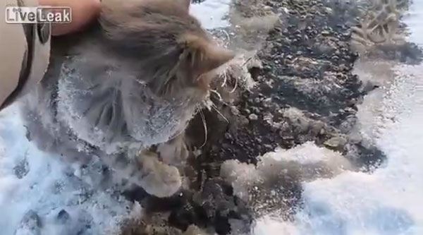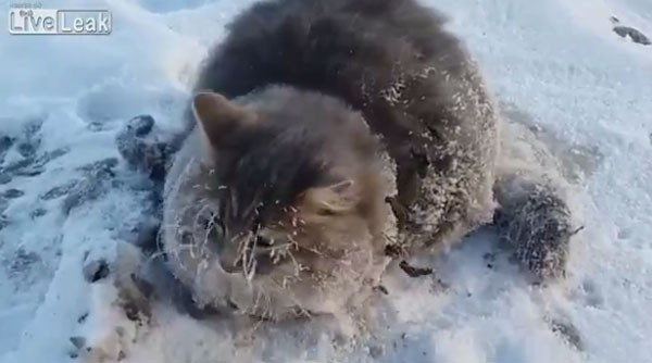최근 영국 동영상 공유사이트 ‘라이브릭’(Liveleak.com)에 게재된 영상에는 혹한이 덮친 러시아의 겨울 날씨 속 꽁꽁 언 강물 위 발이 붙은 채 추위에 떨고 있는 고양이의 모습이 담겨 있습니다.