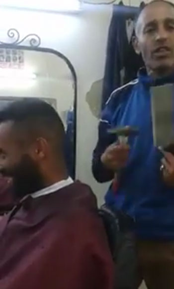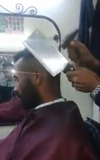 영상 속 이발사는 손님 머리카락 위에 커다란 식칼을 망치로 내리치면서 이발을 한다. 손님 또한 전혀 겁내하지 않은 표정이다.