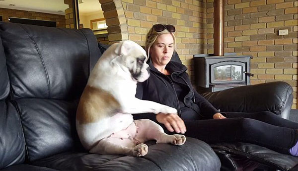 최근 미국 동영상 플랫폼 주킨미디어(Jukin Media)에는 소파에 주인과 앉아 있는 불독의 모습이 담겨 있습니다.