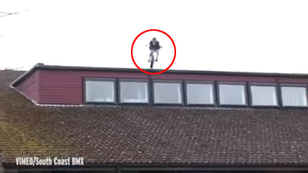 ‘사우스 코스트 BMX’(South Coast BMX)란 제목의 영상에는 패드독 우드 막스콜스 학교 지붕에서 묘기용 자전거를 타고 내려오는 학생의 모습이 담겨 있다.