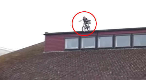 최근 영국 ‘미러’는 잉글랜드 켄트 주의 한 학교 지붕서 자전거 묘기를 펼치다 사고를 당하는 영상 하나를 소개했다.