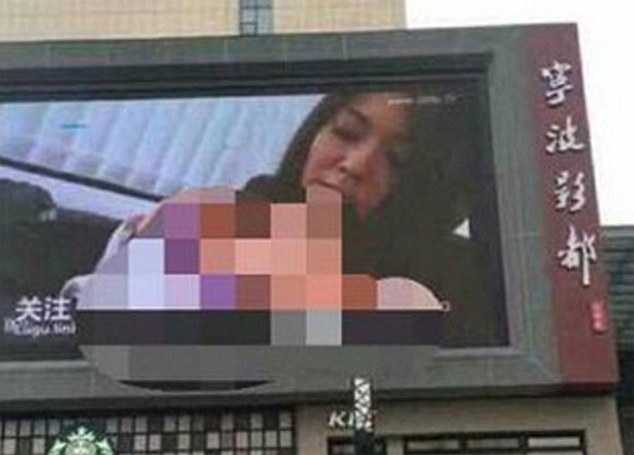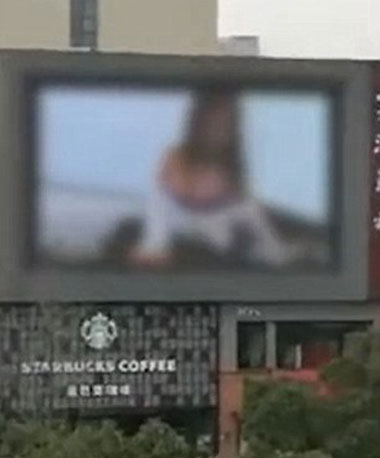 29일(현지시간) 영국 데일리메일은 최근 중국 저장성 닝보 티안룬 스퀘어의 전광판에 성인물이 노출된 영상을 기사와 함께 보도했다.