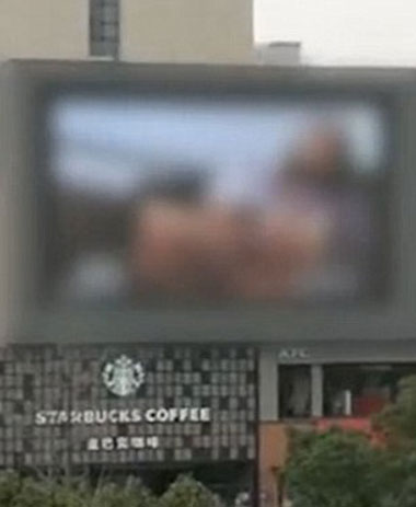 중국의 한 쇼핑몰 전광판에 성인물이 노출되는 사고가 발생했다.