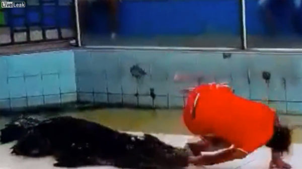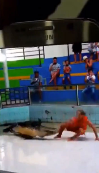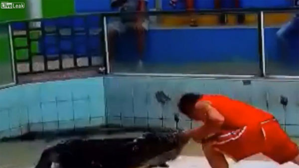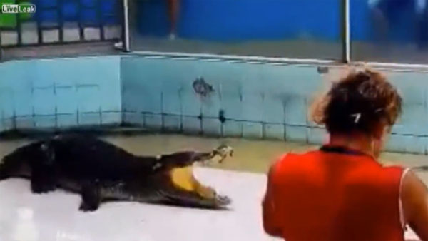 최근 영국 동영상 공유사이트 ‘라이브릭’(Liveleak.com)에는 태국 푸껫의 한 악어쇼 중 봉변을 당하는 조련사의 모습이 담겨 있습니다.