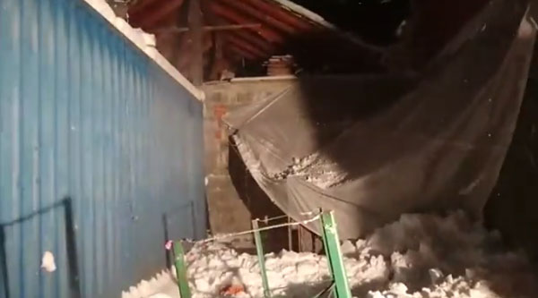 천막 위 눈 치우려다 눈더미에 깔리는 남성