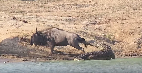 관광 차 아내 토기(Tokkie)와 함께 크루거 국립공원을 찾은 머빈 반 윅(Mervyn Van Wyk)의 카메라에는 놀라운 광경이 담겼다. 갈증을 달래기 위해 물가를 찾은 누 무리와 임팔라떼. 누 무리 중 한 마리가 목을 축이는 순간, 물속에 매복 중인 거대한 악어 한 마리가 먹이를 덮쳤다.