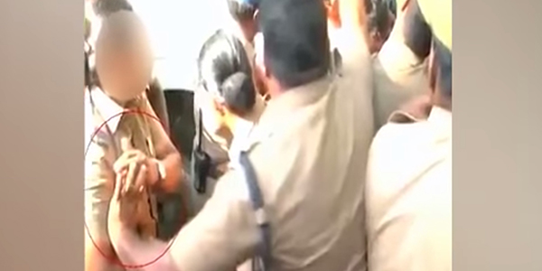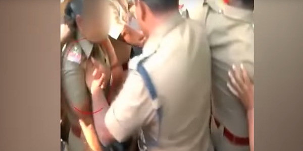 인도의 한 경찰 고위간부가 시위 현장이 혼란한 틈을 타 하급자인 여경의 몸을 만지는 영상이 공개돼 성추행 논란이 일고 있다.