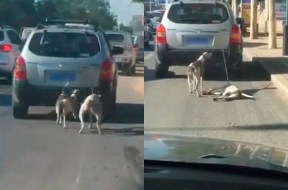 19일(현지시간) 영국 일간 데일리메일에 따르면, 영상은 중국 랴오닝성 다롄의 한 도로에서 찍혔다. 영상에는 그레이하운드 종으로 보이는 개 두 마리가 차 뒤에 목줄이 묶인 채 달리는 모습이 담겼다. 이 중 한 개는 점점 지쳐가더니 결국 바닥에 쓰러지고 만다.