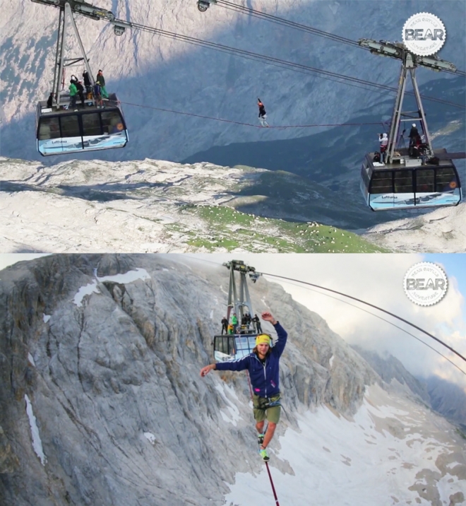 1일(현지시간) 영국 매체 메트로는 독일 외줄타기 팀 ‘One Inch Dreams(1인치의 꿈)’의 두 외줄타기 선수, ‘니클라스 윈터’와 ‘알렉산더 슐츠’가 독일의 최고봉 추크슈피체에서 아찔한 외줄타기를 선보였다고 전했다.