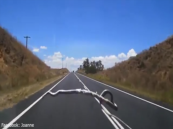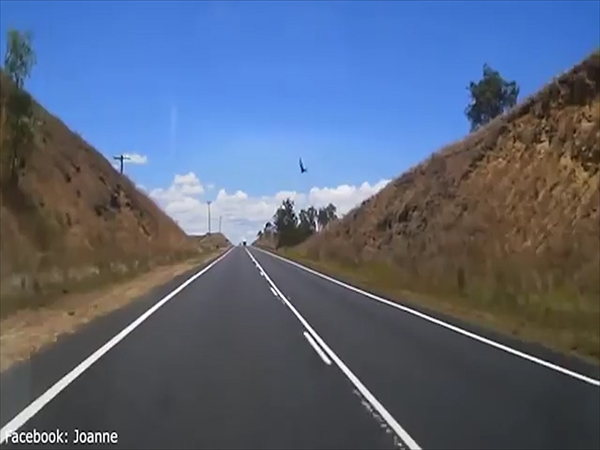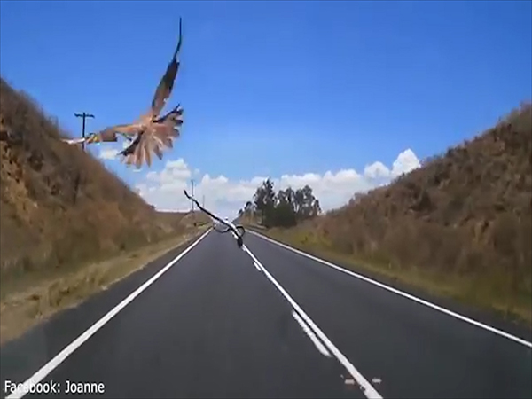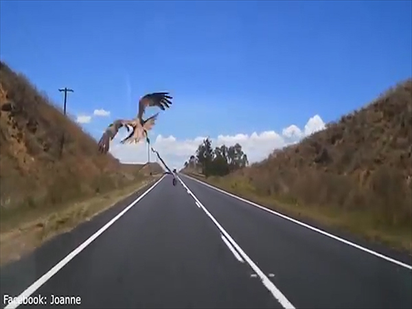 호주의 한 고속도를 달리던 자동차 앞유리에 뱀 한 마리를 떨어뜨리고 날아가는 독수리의 모습이 포착돼 화제다.
