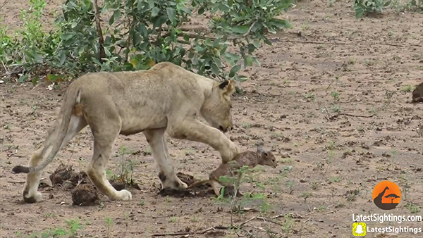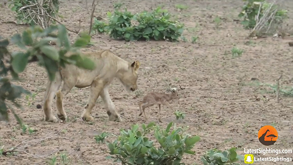 먹잇감을 앞에 놓고 망설이는 암사자의 모습을 포착한 그램 미치는 “처음에는 사자의 새끼인 줄 알았지만, 유심히 보니 작은 영양이었다. 사자는 우리가 보이지 않는 곳으로 녀석을 물고 갔다. 이후 새끼의 울음소리만 들을 수 있었다. 영양이 어떻게 됐는지는 알 수 없다”고 전했다.