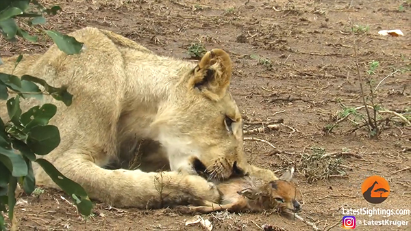 새끼 영양을 사냥한 암사자의 모습이 공개돼 눈길을 끌고 있다.
