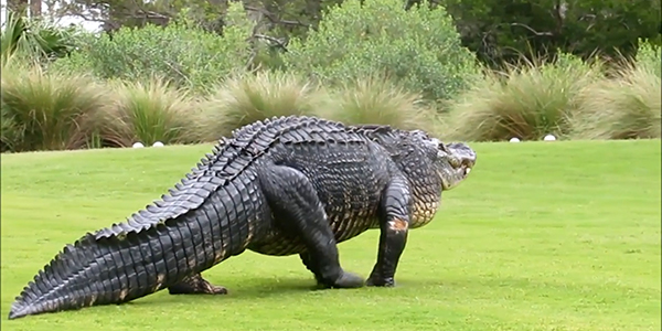 미국의 한 골프장에서 공룡을 연상시키는 거대한 크기의 악어가 카메라에 포착돼 화제다.