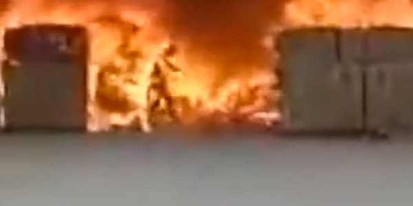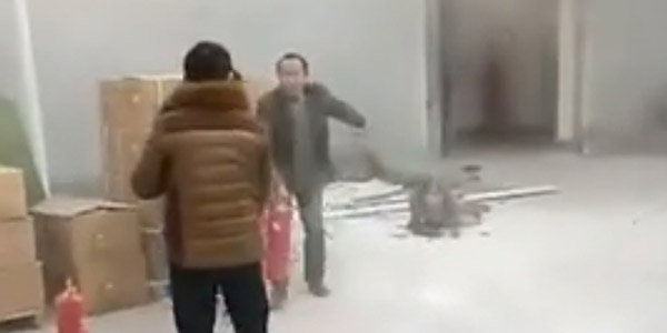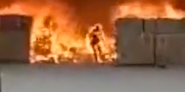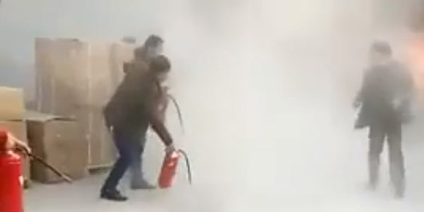 잠시 후, 남성은 온몸이 화염에 휩싸인 채 공장에서 달려나왔다. 밖에 있던 동료는 급히 소화기를 들어 그의 몸에 붙은 불을 껐다. 남성의 옷은 모두 타 버렸고 몸 곳곳에 화상을 입은 상태였다.