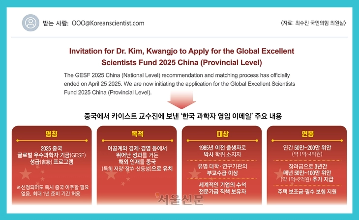 中 영입 표적 된 K과학자… ‘연봉 4억원+α’ DM 쏟아진다