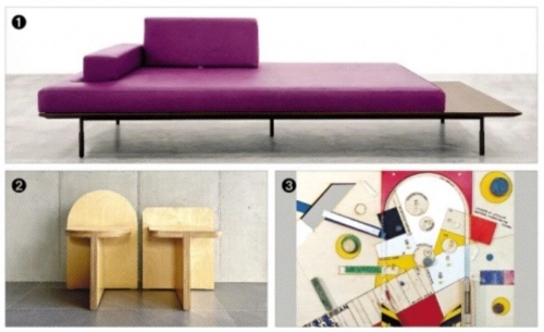전시작 중에서 가장 많은 부분을 차지하는 것은 의자다. 전시에서는 스테인리스 파이프로 만들어진 의자(정의엽), 하나의 유려한 선으로 만든 의자(구승민), 기하학적 요소만으로 구성된 의자②(전이서), 투명성이 돋보이는 의자(장영철) 등을 만날 수 있다. 유 교수는 간단한 조작만으로 편하게 누울 수 있는 침대로 변신하는 소파 ‘데이드림’①을 선보인다.