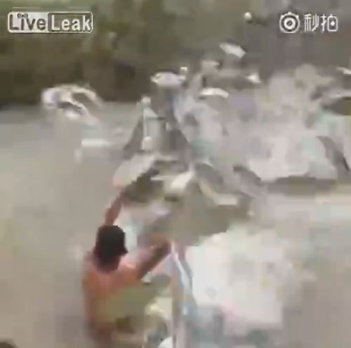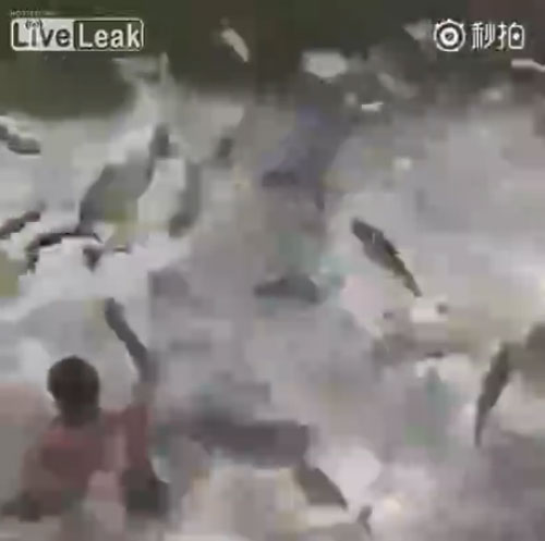 [별별영상]‘물고기 폭풍’ 쏟아지는 물고기에 당황한 어부들