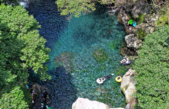 사진은 이날 오전부터 대구·경북에 무더위가 기승을 부린 가운데 청도군 운문천에서 피서객들이 물놀이하며 더위를 식히고 있는 모습.