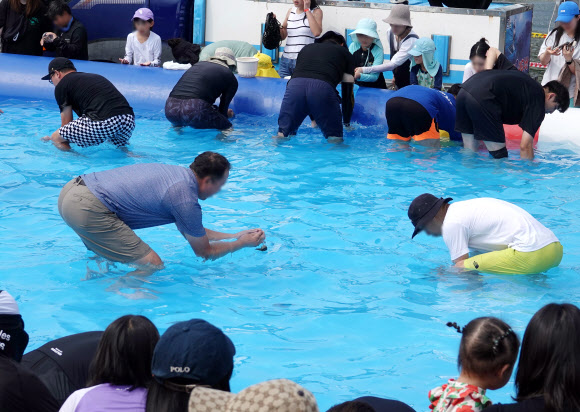 [포토] ‘맨손’ 미꾸라지 잡기 체험