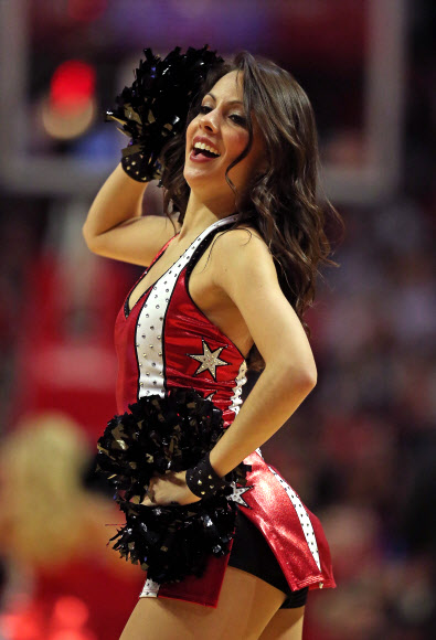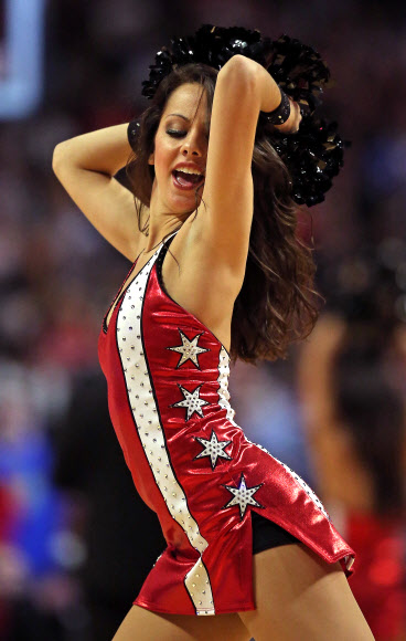 A member of the Chicago Bulls dance team performs during a break between the Bulls and the Cleveland Cavaliers during the season opening game at the United Center on October 27, 2015 in Chicago, Illinois. The Bulls defeated the Cavaliers 97-95. ⓒ AFPBBNews=News1온라인뉴스부iseoul@seoul.co.kr