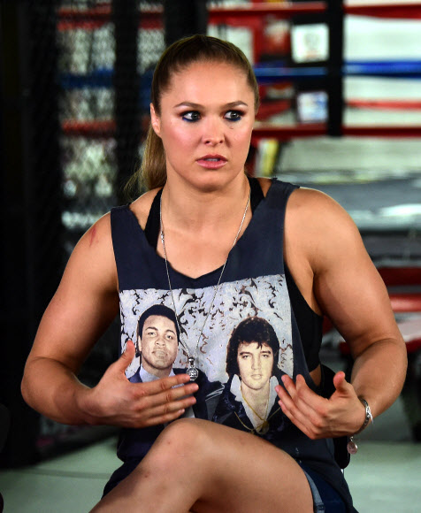 론다 로우지...알리와 프레슬리 티셔츠...’홀리 홈’과의 대결 회견